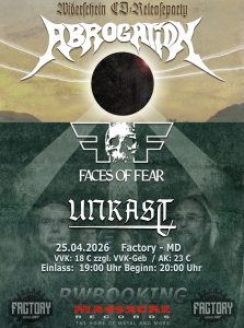 UPCOMING EVENTS PREVIOUS EVENTS HELLFIRE OVER ILSENBURG – PART IV21.03.2026LIVE-REVIEW METAL EMBRACE FESTIVAL XVI06. bis 07.09.2024 DAMNED DAYS (MAGDEBURG EDITION)11. bis 13. 07. 2024 FÊTE DE LA SCHWERMETALL19. 06. 2024 METAL CLASH – FACTORY MAGDEBURG (21.01.2023)REVIEW (TIME FOR METAL):